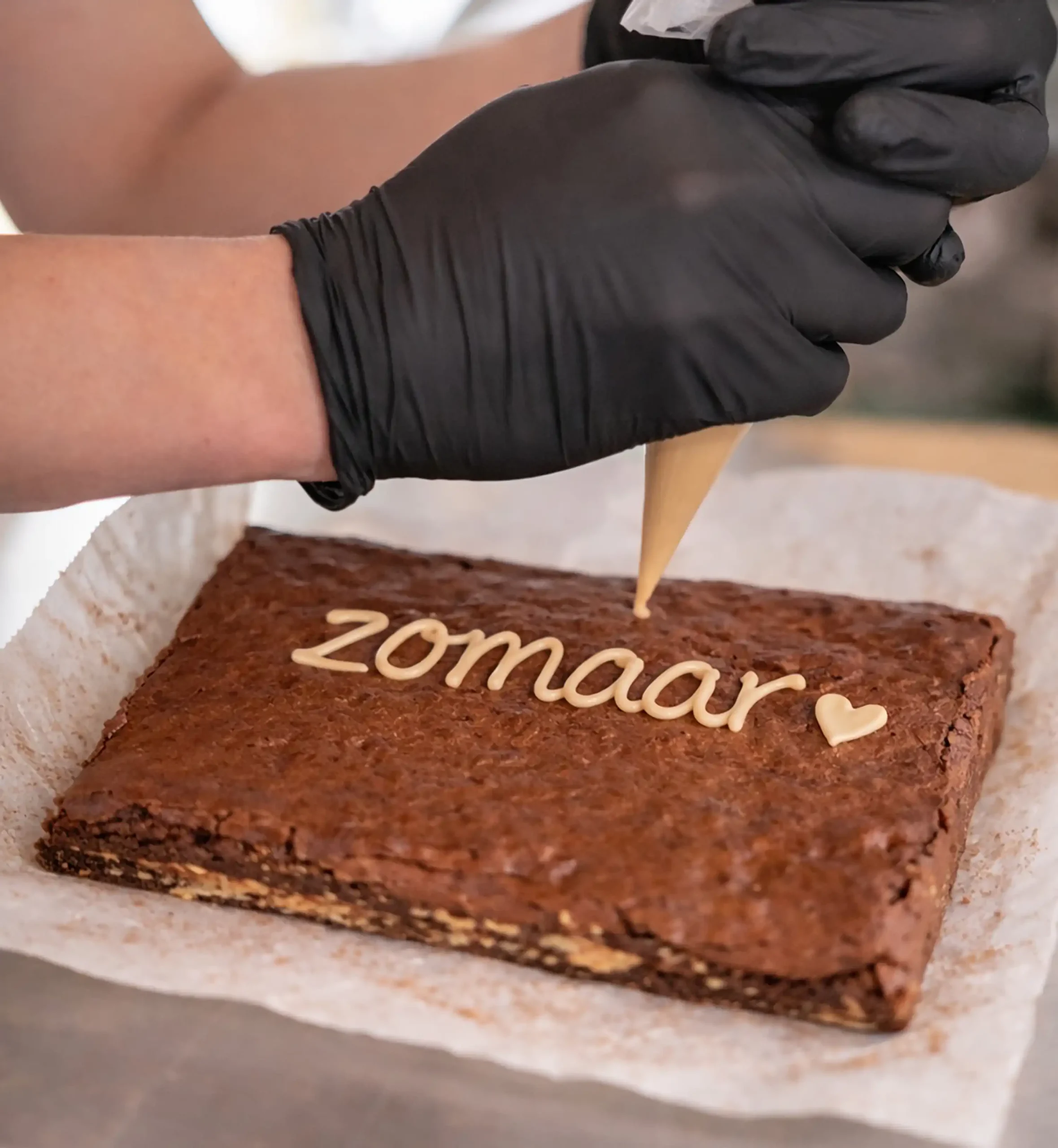 Soms komt het voor dat onze ingrediënten voorraad er harder doorheen gaat dan gepland. Wil je zeker weten dat jouw brownies beschikbaar zijn? Bestel dan een aantal dagen vooruit.